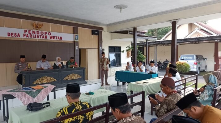 Banyuwangi — Babinsa Desa Parijatah Wetan Koramil 0825-08/Srono, Sertu Irfan Gunarjo, menghadiri kegiatan pelantikan perangkat desa yang digelar di Balai Desa Parijatah Wetan, Kecamatan
