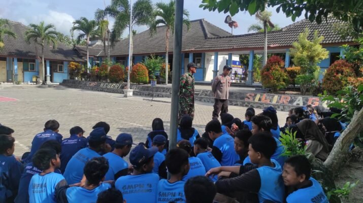 Babinsa dan Bhabinkamtibmas Latih Tata Cara Upacara Bendera di SMPN 4 Siliragung