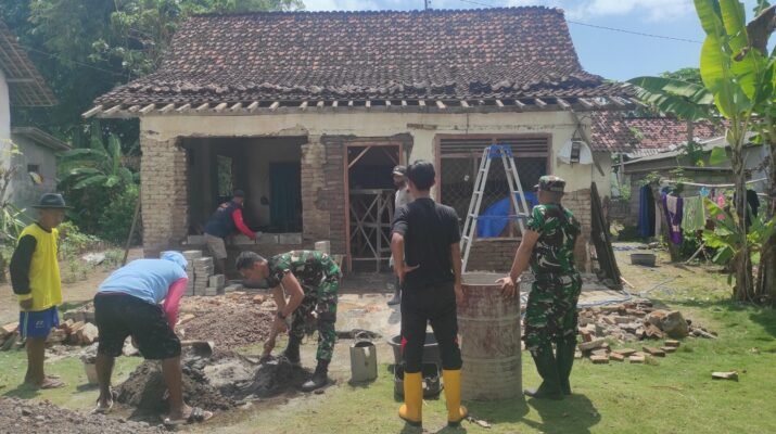 Babinsa Koramil 0825/17 Muncar Bersama Warga Gotong Royong Renovasi Rumah Tidak Layak Huni (RUTILAHU)