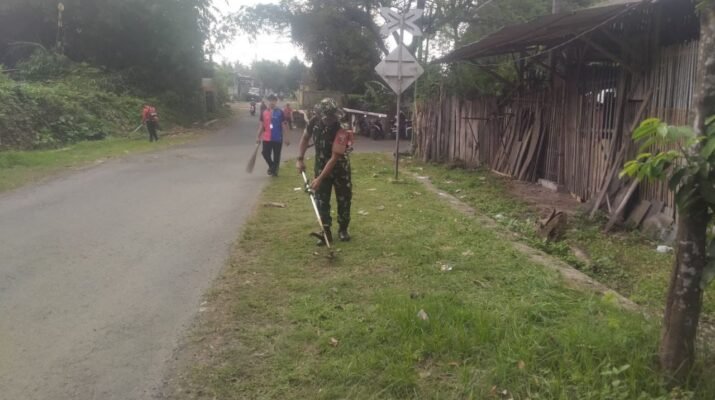 Rogojampi, Dalam semangat gotong royong dan menjaga kebersihan lingkungan, Babinsa Desa Gitik, Arif Suherman, memimpin kegiatan kerja bakti pembersihan rumput liar di bahu kiri dan kanan ruas jalan di Dusun Timurejo, Desa Gitik, Kecamatan Rogojampi. Sabtu (11/10/2025).