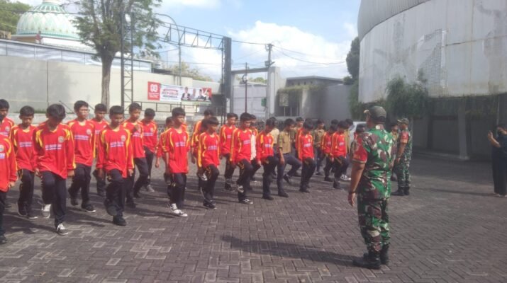 Banyuwangi – Pelatihan Peraturan Baris Berbaris (PBB) sebagai wujud latihan fisik guna membentuk sikap kedisiplinan kekompakan, loyalitas dan kepedulian, rasa persatuan dan rasa tanggung jawab sejak dini, Babinsa Koramil 0825/01 Banyuwangi Kaptu Supriyanto dan Koptu Sugeng Priyanto memberikan pelatihan dasar Peraturan Baris Berbaris (PBB) dan Wawasan Kebangsaan kepada Siswa-siswi SMP Muhammadiyah 3 Banyuwangi, Sabtu, 11/10/2025