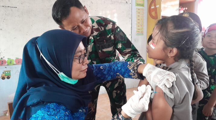 Pesanggaran – Peduli kesehatan pada anak, Koramil 0825-11/Pesanggaran bersama PKM Pesanggaran dalam rangka melaksanakan imunisasi Program Bulan Imunisasi Anak Sekolah (BIAS) bertempat di SDN 2 Sumbermulyo Dusun Mulyoasri Desa Sumbermulyo Kecamatan Pesanggaran Kabupaten Banyuwangi, Rabu (12/11/2025).