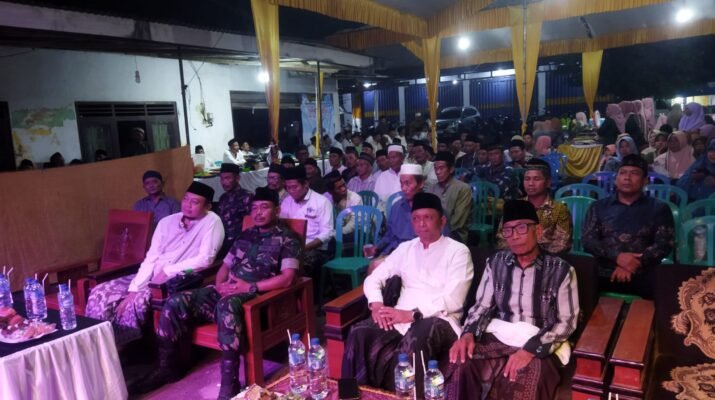 Pesanggaran – Koramil 0825-11/Pesanggaran Serka Sumardi dan Sertu Nurhidayanto (Babinsa Desa Kandangan) menghadiri pengajian akbar dalam rangka memperingat Isro’ Mi’raj Nabi Muhammad SAW 1447