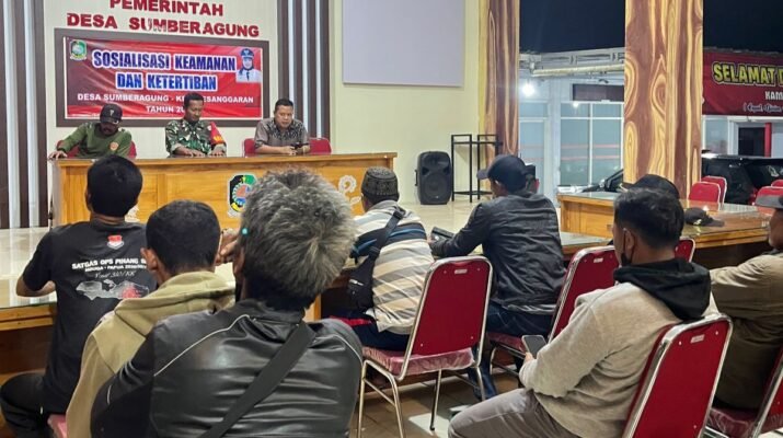 Pesanggaran – Babinsa Desa Sumberagung Koramil 0825-11/Pesanggaran Kodim 0825/Banyuwangi Serka Dwi Hariyanto melaksanakan sosialisasi kamtib dengan perangkat desa beserta warga binaan bertempat di Pendopo