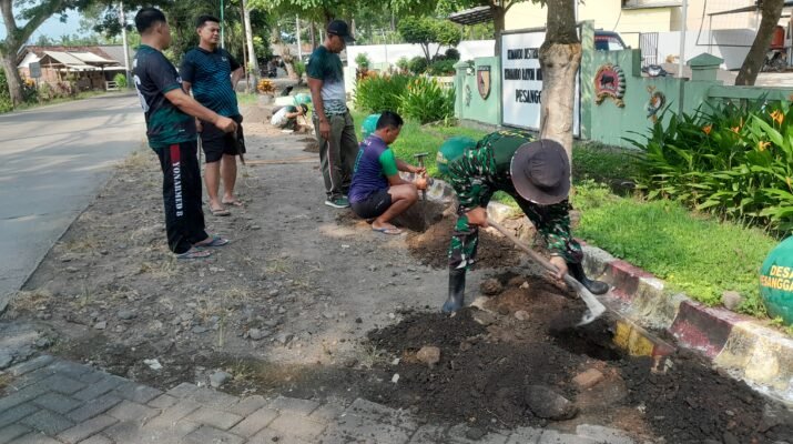 Mewujudkan Kebersihan Danramil Pimpin Kerja Bakti Bersama Anggota di Makoramil Pesanggaran