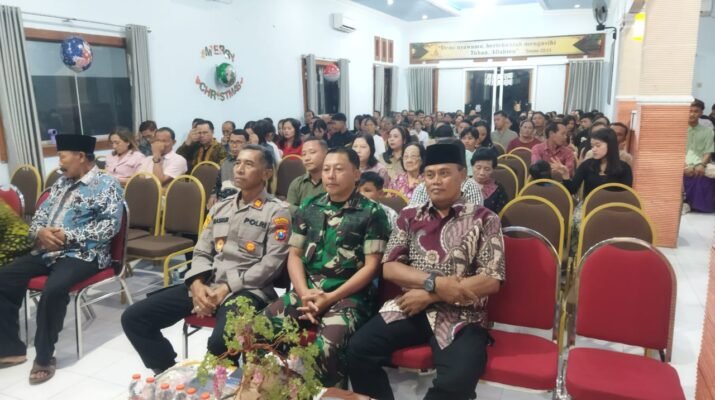Pesanggaran – Danramil 0825-11/Pesanggaran bersama Forpimka Pesanggaran menghadiri Perayaan Hari Natal Tahun 2025 yang diselenggarakan di Gereja Pantekosta Tabernakel Dusun Krajan Desa Sarongan Kecamatan