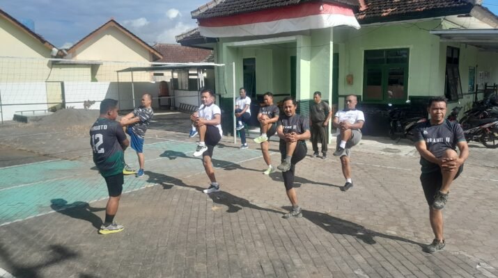 Pesanggaran – Olahraga bersama antara Koramil 0825-11/Pesanggaran dan Pos TNI AL Pancer yang hadir Kapten Arm Edy Tri Santoso (Danramil 0825-11/Pesanggaran) beserta Anggota dan Letda Laut ( P ) Suripto ( Danpos TNI AL Pancer) beserta anggota merupakan bentuk nyata sinergitas TNI dalam menjaga kebugaran fisik sekaligus mempererat tali silaturahmi antar satuan. Kegiatan ini seringkali melibatkan berbagai elemen seperti jalan santai, senam bersama, dan olahraga umum lainnya untuk meningkatkan kekompakan, kegiatan dilaksanakan Makoramil 0825-11/Pesanggaran Jl. Raya Sukamade No.101 Desa Sumbermulyo Kecamatan Pesanggaran Kabupaten Banyuwangi, Selasa (21/04/2026).