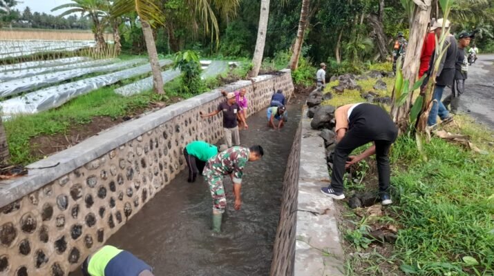 Babinsa Koramil 0825/20 Songgon Bersama Warga Gelar Karya Bhakti Pembersihan Saluran Irigasi Dan Perbaikan Jalan Berlubang