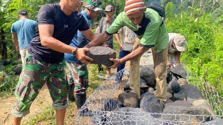 Satgas TMMD 126 Lebakharjo Kejar Pemasangan Kawat Bronjong di Tengah Tingginya Curah Hujan Di tengah tingginya intensitas hujan yang melanda wilayah Kecamatan Ampelgading, Kabupaten