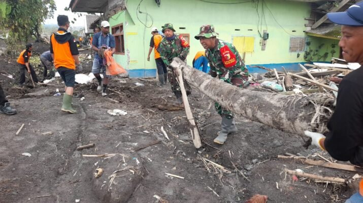 Danramil 0821/14 Pronojiwo, Letda Inf Sugiono, menyampaikan bahwa pembersihan dilakukan secara menyeluruh dan diprioritaskan pada rumah-rumah dengan akumulasi material terberat. TNI bersama Polri, perangkat desa, relawan, dan masyarakat melakukan kerja bakti terpadu dengan memanfaatkan alat manual dan bantuan semprotan air untuk mempercepat proses pembersihan.