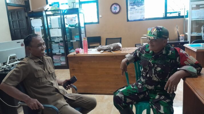 Pesanggaran – Bertempat di Kantor Desa Sumbermulyo, Babinsa Koramil 0825-11/Pesanggaran Kodim 0825/Banyuwangi Sertu Guntari melaksanakan kegiatan rutin, yang merupakan salah satu bagian tugas pokoknya yaitu melaksanakan interaksi secara langsung dengan Perangkat Desa Sumbermulyo Kecamatan Pesanggaran Kabupaten Banyuwangi, Kamis (09/04/2026).